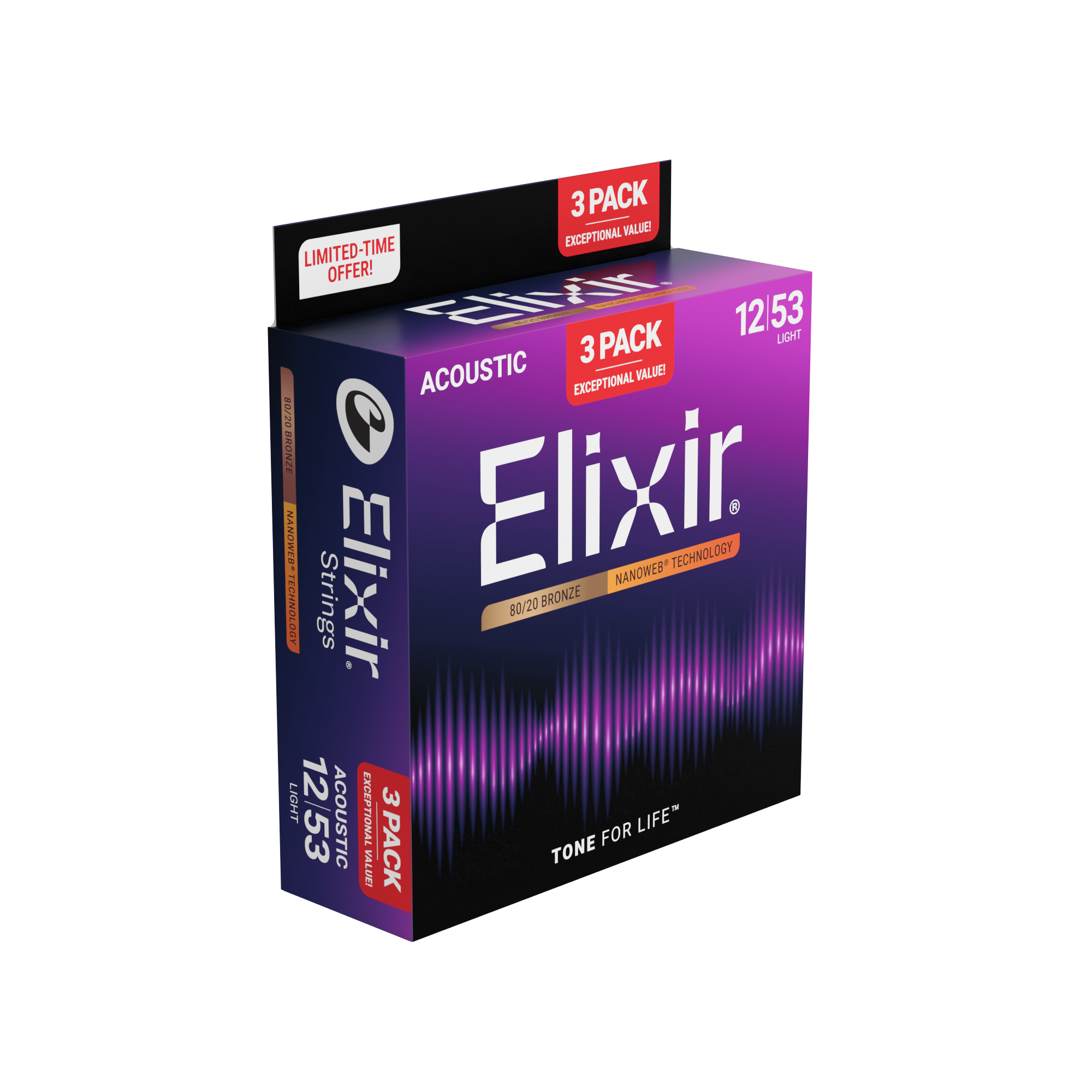 3PACK Struny Elixir NanoWeb 80/20 Bronze 12-53 Light NEW (16565)